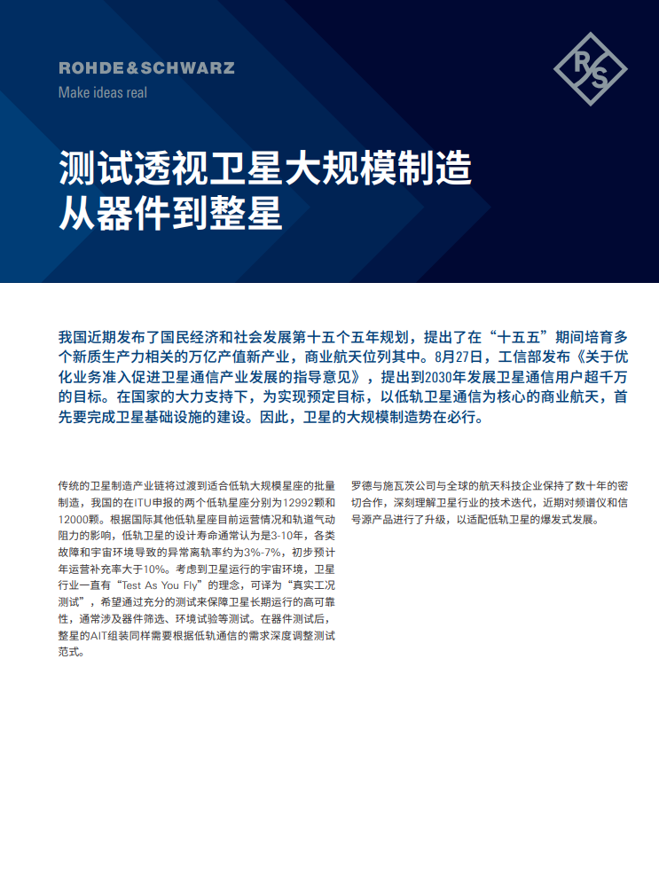 罗德与施瓦茨为各行各业、基础设施运营商和政府机构开发、生产和销售广泛的电子产品。作为一家独立公司,罗德与施瓦茨在所有业务领域发展成为技术与市场领导者,包括无线通信和射频测试与测量、广播电视与媒体、空中交通管制和军事无线电通信、网络安全以及网络技术。