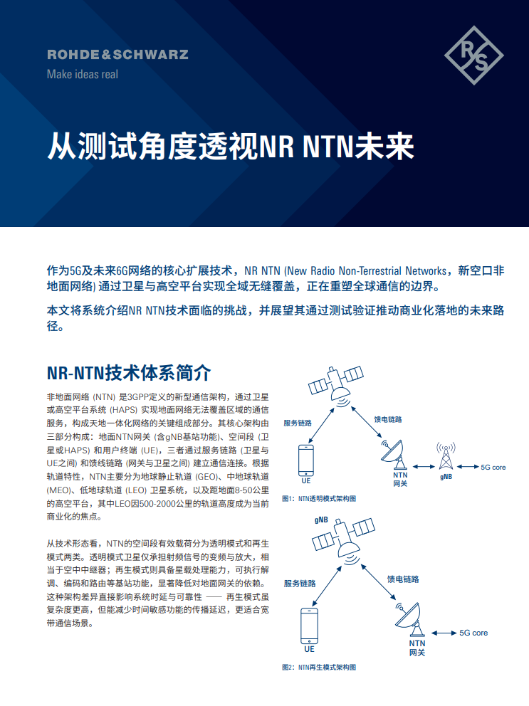 点击参与5G NTN旨在利用卫星提供广域覆盖,特别是在地面网络服务不足的偏远地区,从而实现对地面5G网络的补充。白皮书系统性地介绍了NTN的应用场景、面临的六大技术挑战(如天线设计、星间链路等)、系统架构(包括透明和再生两种模式)、以及部署频谱和潜在商业星座。同时,重点分析了NTN在射频传播、长延迟(RTT)、多普勒频移和法拉第旋转等方面的独特挑战,并讨论了相关的协议栈调整和移动性管理等关键议题,描绘了该技术从3GPP R17开始迈向未来6G演进的路径。